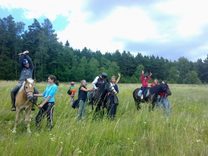 Chcete jezdit na koni? Dozvědět se mnoho věcí o koních? Poznat koně? Chtěli jste někdy vidět kováře v akci? Popovídat si s veterinářem? Poznat práci stájníka? Dozvědět se, jak se kůň cítí při jízdě s větrem o závod? Jak při nemoci? Jaké prožívá radosti a jaké starosti? Chcete prostě prožít týden opravdového života s koněm? Pojeďte s námi. Život s koněm, to není jen o tom se na koni učit jezdit. To je i učit se od něj žít. Kůň nás inspiruje svým klidem, svojí láskou ke člověku. Svojí rozvahou, ale i svojí bujností a uměním se radovat. Člověk by stejně jako kůň neměl rozlišovat, zda je někdo malý nebo velký, tlustý nebo hubený, bílý nebo černý, zdravý nebo handicapovaný…Ale jen dobrý nebo špatný…Pojďme se společně učit na koni, učit o koních, učit od koní… (Motto letošních pobytů).