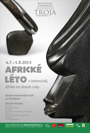 a) Letos v létě se v Botanické zahradě můžete nechat přenést do exotické Afriky . Od 4.7. do 1.9. můžete ve venkovní expozici Stráň obdivovat osmdesát soch vytesaných sochaři v umělecké komunitě Tengenenge v Zimbabwe. Po celou dobu výstavy (kromě pondělí) najdete ve výstavním sále Africký bazárek s originálními výrobky z nejrůznějších koutů Afriky. Část výtěžku z prodeje podpoří vzdělávací projekty v Africe. Po čtyři víkendy je navíc pro děti i dospělé připraven bohatý program věnovaný různým aspektům africké kultury od hudby až po rukodělnou tvorbu. Nebudou chybět ani cestovatelské přednášky, workshopy, tematické občerstvení a mnoho dalšího. Bližší infornmace na www.botanicka.cz.
