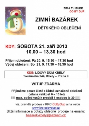 Příjem oblečení: Pá 20. 9. 15.30 – 17.30 hod