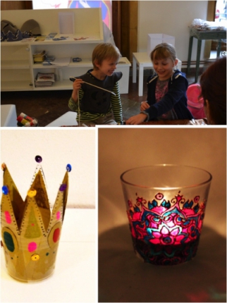 Společně budeme vytvářet svícny na čajové svíčky ze sklenic. Zdobit je budeme pomocí barev na sklo či samolepícími fóliemi. Můžeme se inspirovat gotickými vitrážovými okny, ale kreativitě se meze nekladou. Konturami navrhneme motiv a poté ho vybarvíme. Pro menší děti bude k dispozici méně náročná varianta "zmrzlého" skla, ddy si připravíme siluetu a zbytek obarvíme vybranou barvou. Barvy na sklo jsou po výpalu v kuchyňské troubě voděodolné.