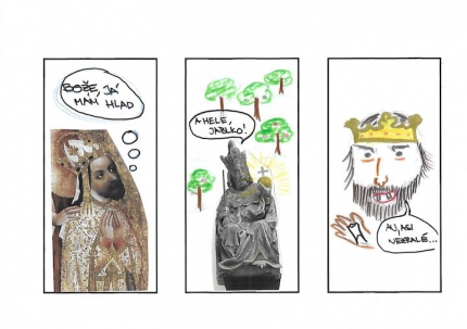 Děti si k příběhu o životě panovníka, který uvidí a uslyší na výstavě, přidají příběhy vlastní. Společně s lektorem budou spojovat umění doby Karla IV. s tím současným. Děti do komiksu formou jednoduché koláže použijí dopředu přichystané obrázky dobového umění 14. století. Pak už stačí jen něco přimalovat nebo odstřihnout a z Karla IV. může být třeba superhrdina.