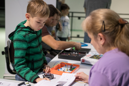 Vyrobte si blikací majáčky, skleněné vitráže, re-plyšáky, origami, papírové modely nebo vlastní potisk triček. Pronikněte do 3D tisku, seřizování jízdních kol i robotických stavebnic.