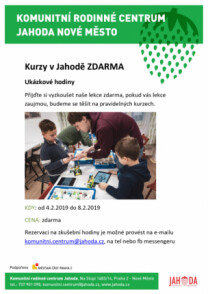 Nevíte, na jaký kroužek přihlásit dítě? Vyzkoušejte kurzy v JAHODĚ ZDARMAOd 4. do 8. února budou v Komunitním rodinném centru JAHODA probíhat ukázkové hodiny všech kurzů ZDARMA a až poté se mohou rodi...