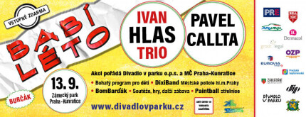 Zveme na tradiční akci Babí léto, která se koná 13.9. v Zámeckém parku Kunratice! Bombarďák, Ivan Hlas Trio, Pavel Callta a další!Bohatý program pro děti – lezecká stěna, kladka mezi stromy, výtvarné...