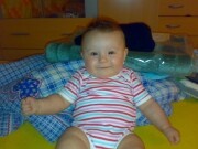 Holky, tak dneska ve 22:39 je našemu Honzíčkovi půl roku, strašně to letí - poprvé jsem sem psala po potvrzení těhu doktorem (10.3.2008), to byl 6mm fazolka a teď už je to takovej klacek... (v 5 měsících měl 69cm a 7,2kg). Už se krásně nahlas chechtá, piští, povídá (pár slabik, ba, pa, ma, jinak má repertoár širokej, od mručení až po skřeky), hraje si, otáčí se na bříško, cestuje v postýlce, papá mrkvičku...Na kontrolu jdeme za týden, pak dám vědět aktuální míry