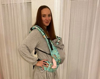 Denisa ve 22. týdnu těhotenství testuje nosítko Tula