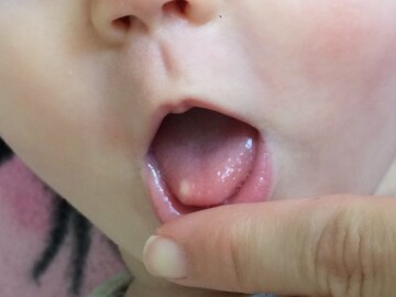 Dobrý den, moje dcera má od narození na špičce jazyka bílý vyrůstek/hrboleček a chtěla bych se zeptat na radu, co to může být a jestli je potřeba s tím něco dělat? Momentálně má 5 měsíců a výrůstek nemizí a s tím jak roste, taky se trocha zvětšil. Přikládám fotky. Děkuju moc za informace a rady.