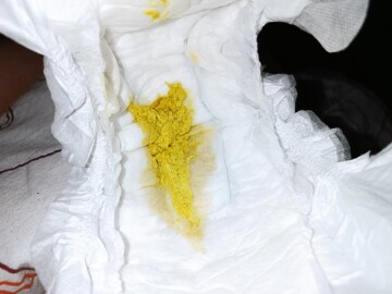 Dobrý den,synovi jsou čerstvě 2 měsíce, od narození je na um Beba supreme pro. Momentálně jsme chytli bohužel oba dva virózu od jiného dítěte. Má rýmu, takže stříkáme mořskou vodu, odsávání hleny vysavačem a stříkáme Nasivin pro novorozence. Včera ráno měl ve stolici trochu hlenu a pár jakoby mazlavějších kousíčků stolice, jinak byla trochu nazelenalá, taková spíše khaki. Druhou stolici měl ukázkovou hořčicovou, jen trošku hlenu. Dnes ráno měl ale stolici opět khaki ale i hořčicovou, trochu hlenu, ale měl ji i tužší. Myslíte, že to může být tím, že je momentálně nemocný? Nebo mám začít plašit? Přikládám fotky dnešní ranní stolice. Děkuji moc za radu.