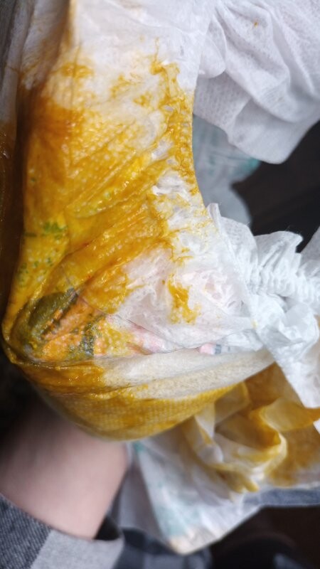 Dobrý den,dcera za týden 3 měsíce, ve čtvrtek měla ve stolici zelený hlen, v další hlen v barvě stolice, včera ve stolici zelené kousky, dnes ráno se mi to zdálo jako průjem viz foto, je to v pořádku nebo jde o nějaké střevní potíže? Děkuji