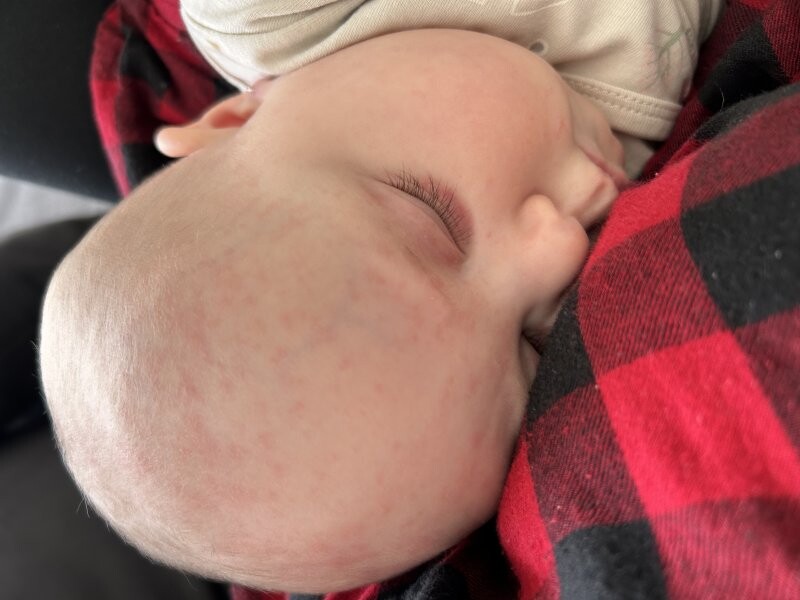 Dobrý den, může být i takto rozsáhlá vyrážka na hlavě a obličeji znakem šesté nemoci? Nebo spíše vypadá na alergickou reakci? 7m, 3dny horečky kolem 39 a dnes již jen toto, zhoršuje se od rána. Co mě zaráží jsou ty podlité oči, ty má od prvního dne horečka, nejdříve jen na jednom, postupně na obou. Jinde vyrážka zatím není. Jinak spavost, plačtivost, nechutenství, řidší stolice. Zřejmě i prořezávání horních jedniček. Děkuji, Zuzana
