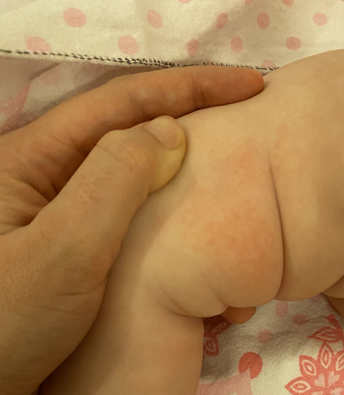 Hezký den, paní doktorko,na tělíčku naší dcerky se začaly objevovat červené suché flíčky. Začalo to dvěma malými na nožičkách a nyní se to stále šíří. Už to má i na bříšku. Řešíme to od ledna s naší pediatričkou, ale podle ní to atopický ekzém není a jediné co nám poradila je, ať to promazáváme modrou indulonou. Omezili jsme také koupání a do koupele přidáváme ovesné vločky. Ekzém se však stále šíří a tak bych ráda znala názor i jiného odborníka, co to může být, případně co dělat. Přikládám i foto.Děkuji mockrát,Marie