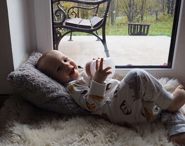 Maminka Veronika vyzkoušela několik lahviček, ale antikoliková lahvička Zero Zero je nejlepší! Syna Matthiase přestalo bolet bříško a je nyní usměv...