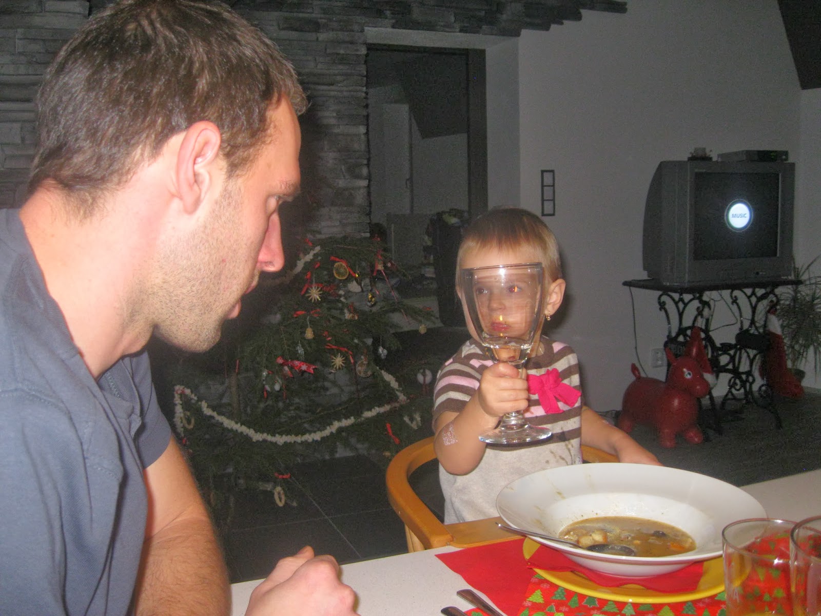 | Naše první rodinné vánoce - ukazují i zvyklosti u stolu - hezké oblečení, hezká výzdoba, hlavně úsměvy |