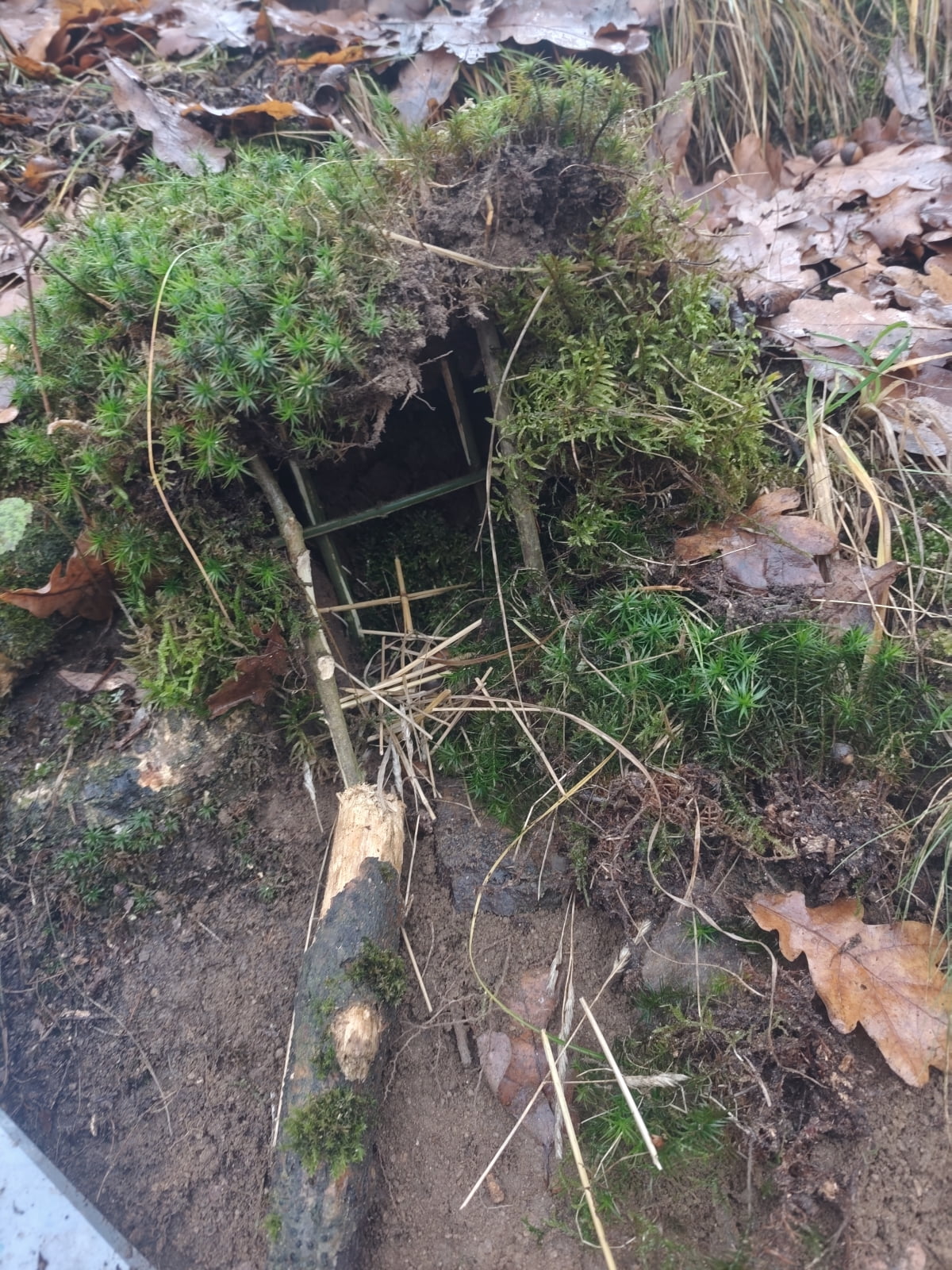 Místo které jsme nazvali spižírnou chtělo přestavbu. Já jsem upravila prostor a Anetka vše rozdělila. Natálka si mezitím půjčila motyčku a začala pracovat na nové spižírně. Nakonec jsme jí společně vyslali mechem a já vytvořila střechu z mechu a větviček.