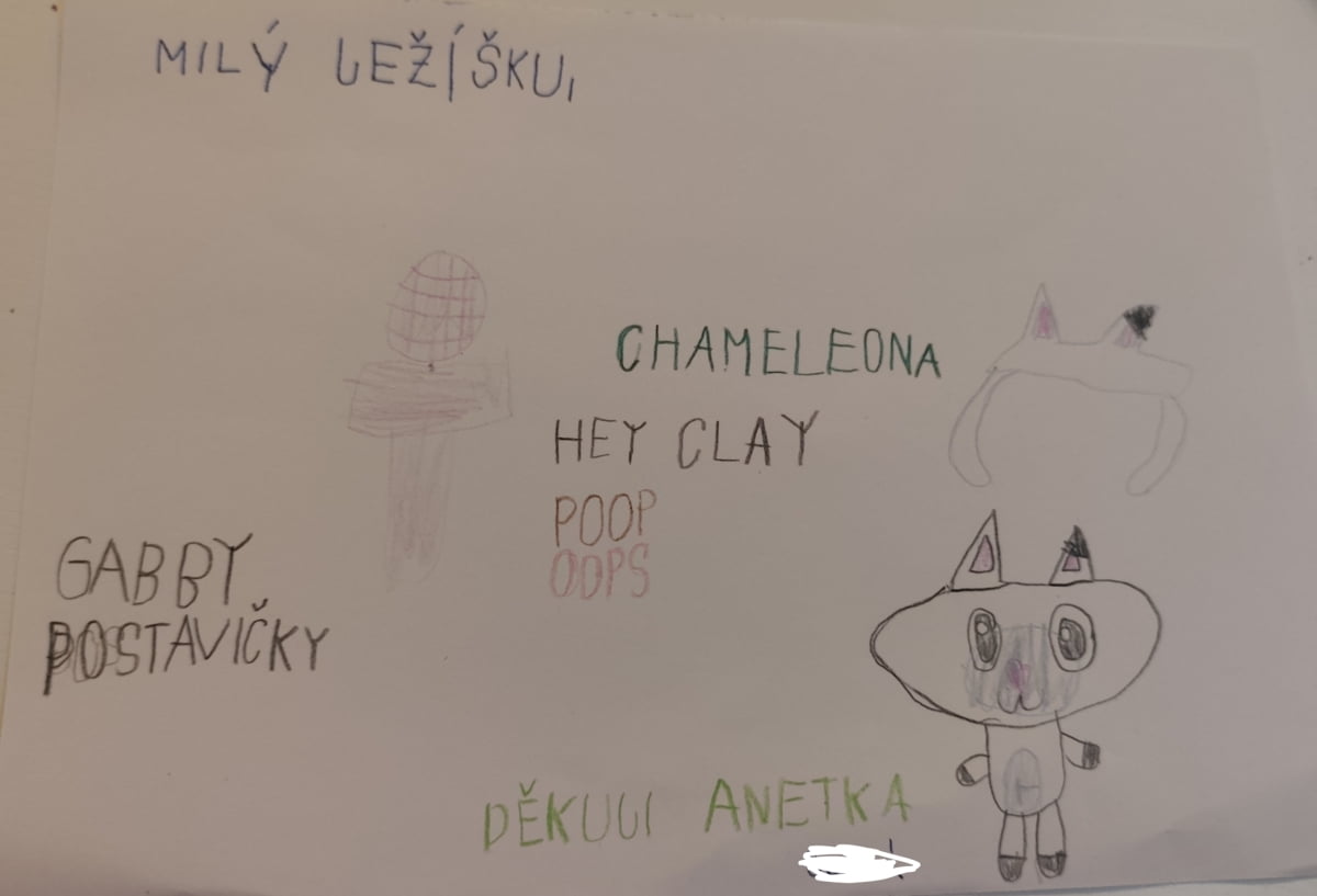 Anetka s mojí malou pomocí napsala a namalovala dopis sama. Byla jsem na ni moc hrdá. Ano jedno písmenko je obráceně a text není dokonalý ale já jsem hrdá máma.