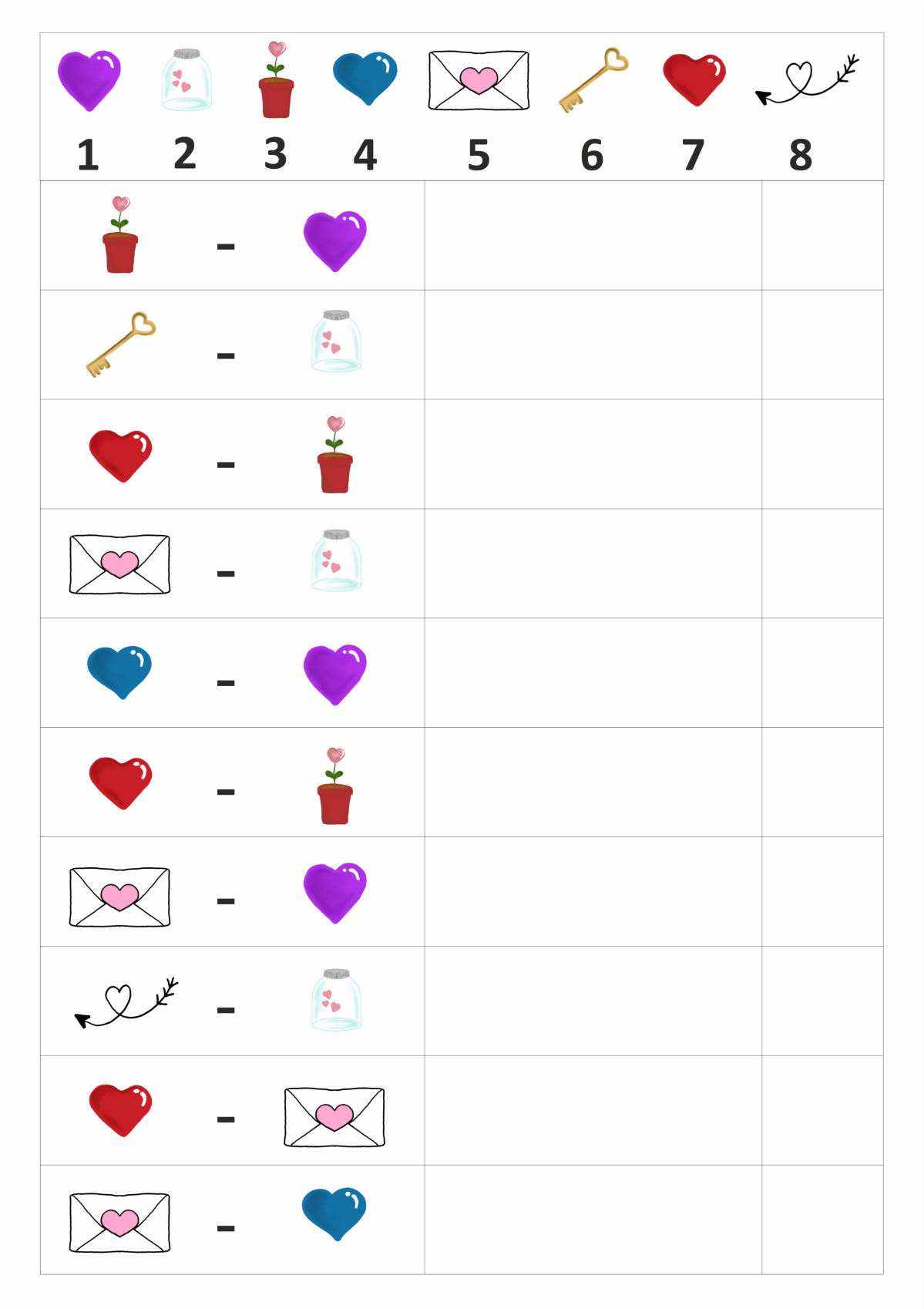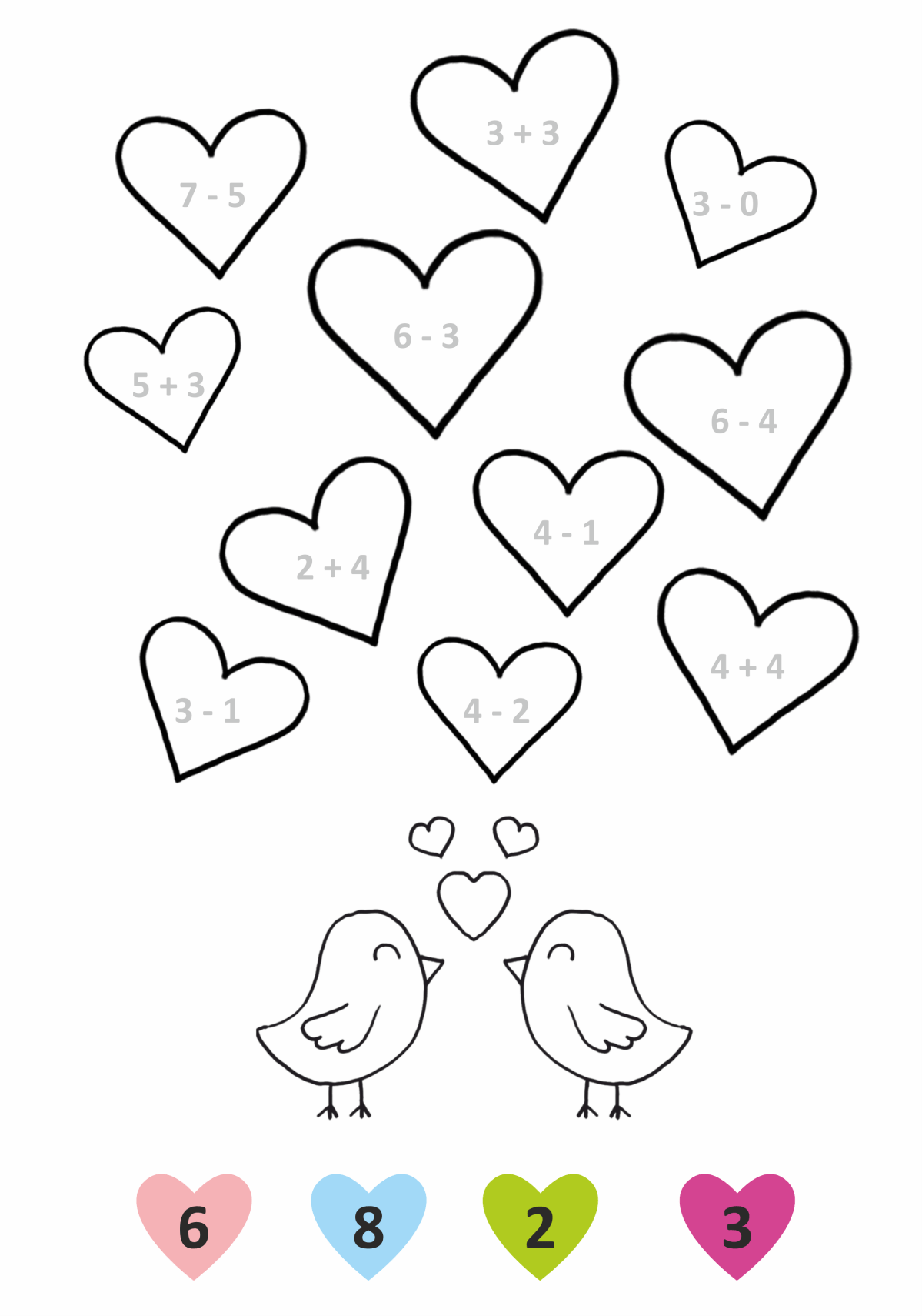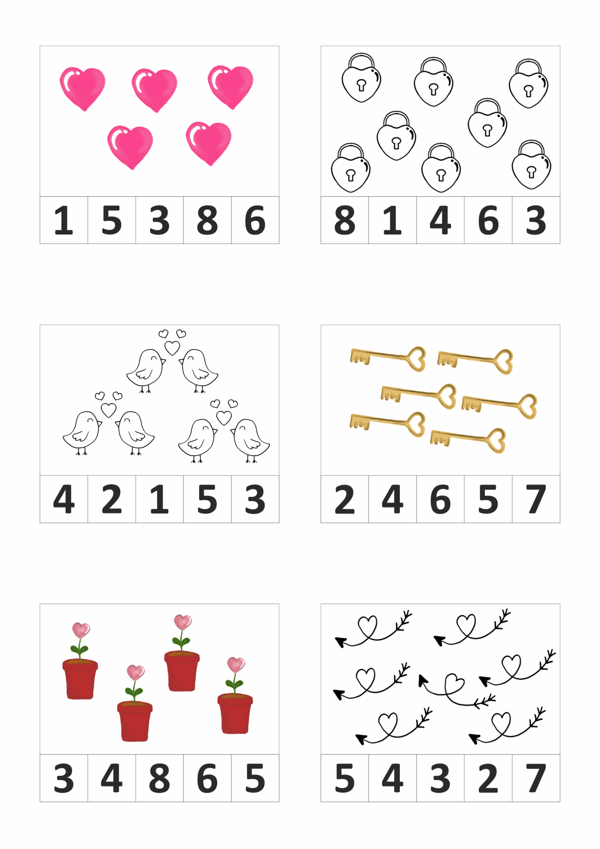Tentokrát jsem se zaměřila na svátek zamilovaných. Sice ho doma také nijak neprožíváme ale přeci jen už sem také patří. Děti můžou trénovat počítání, hledání správné cesty ale můžete si společně zahrát i hru.
