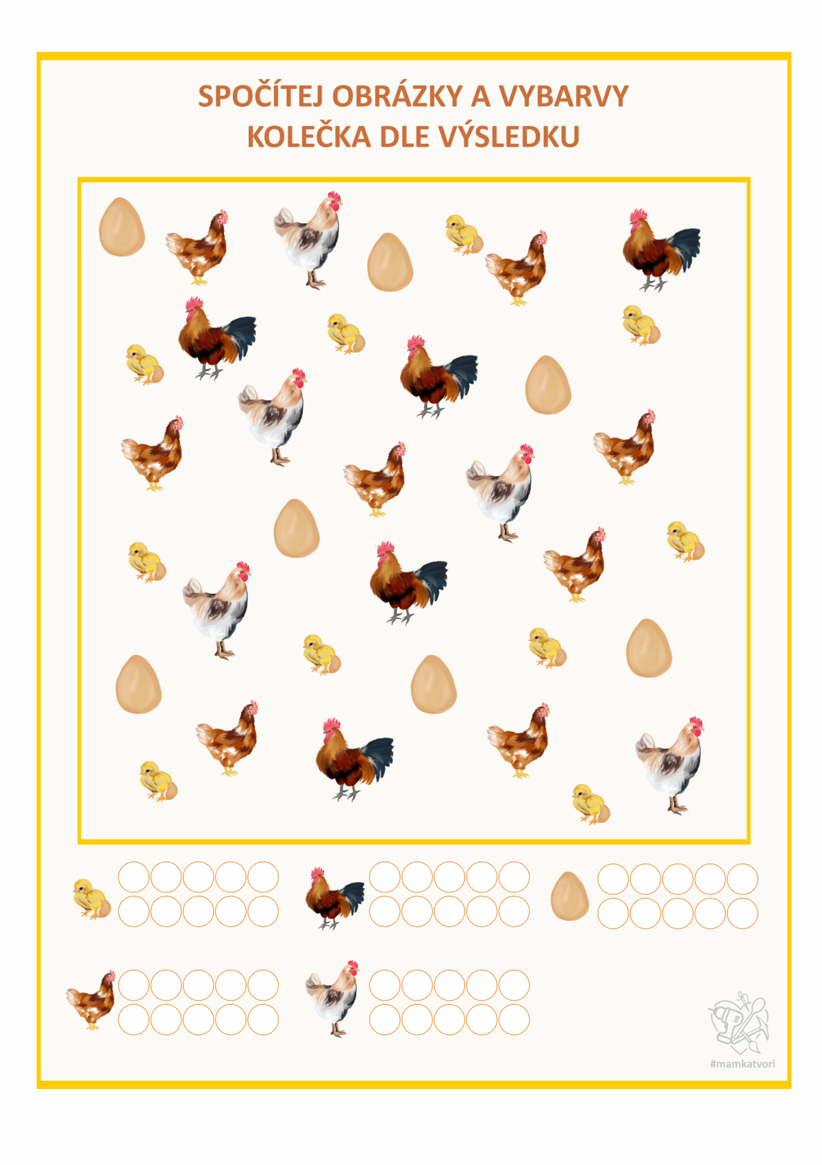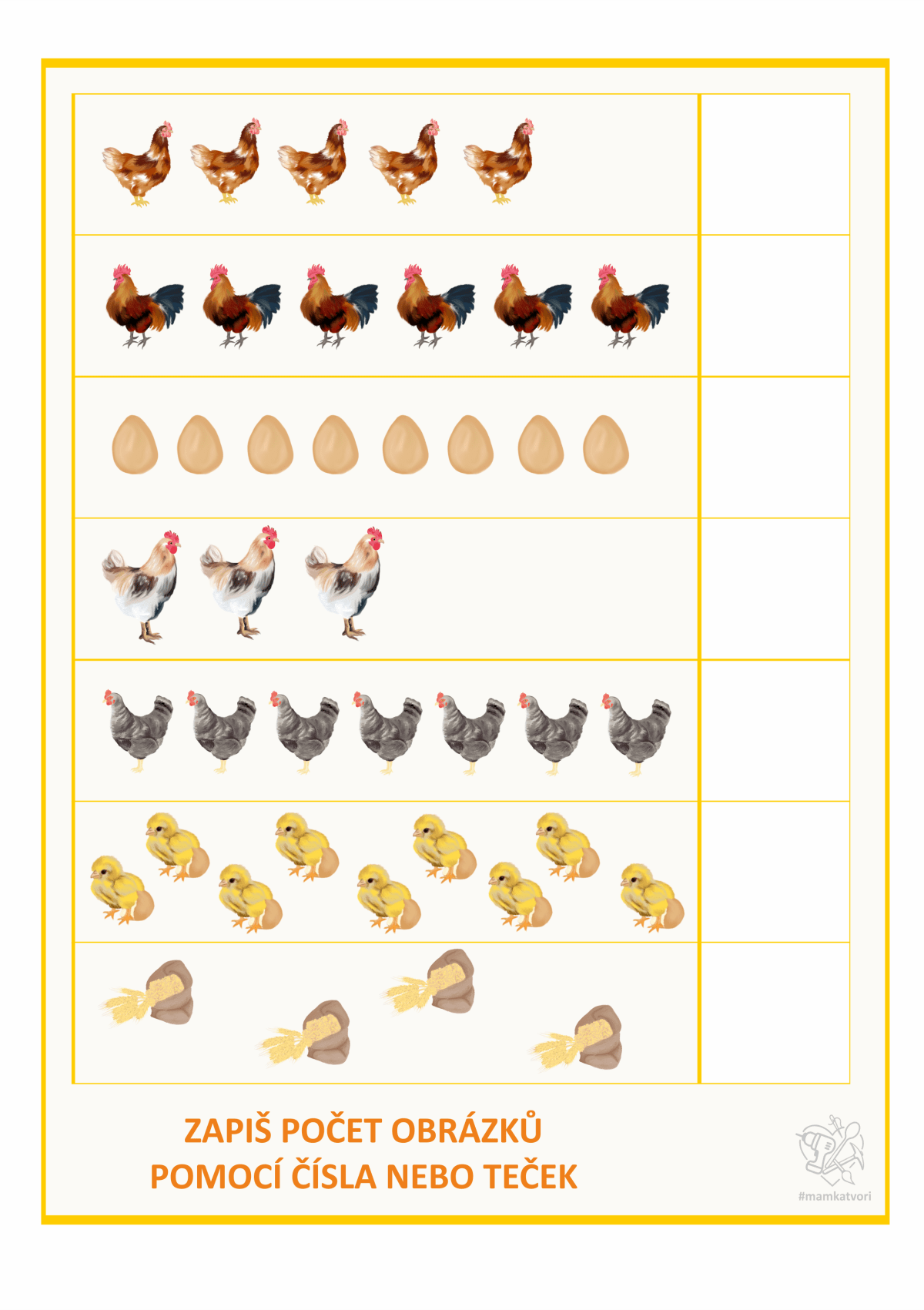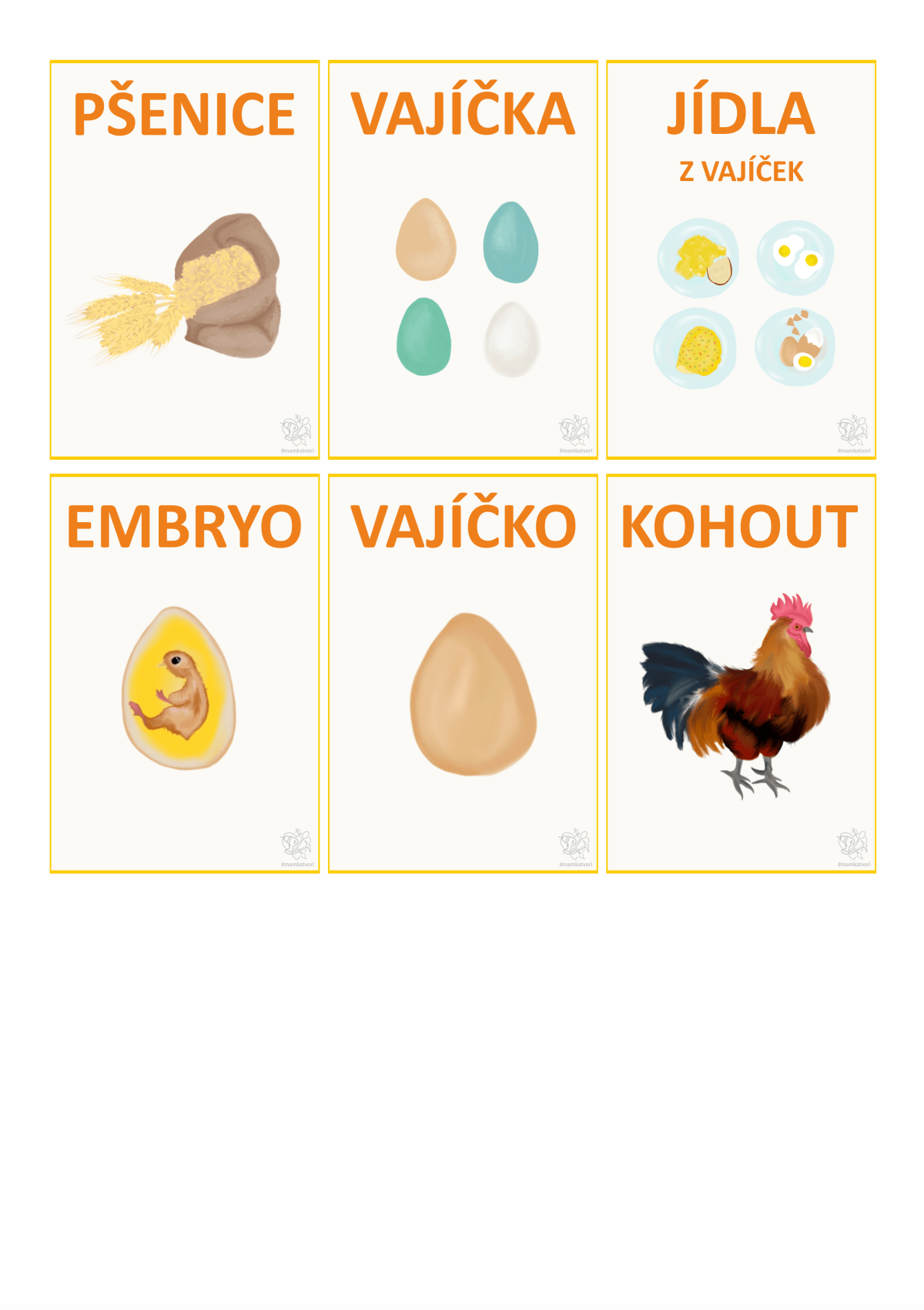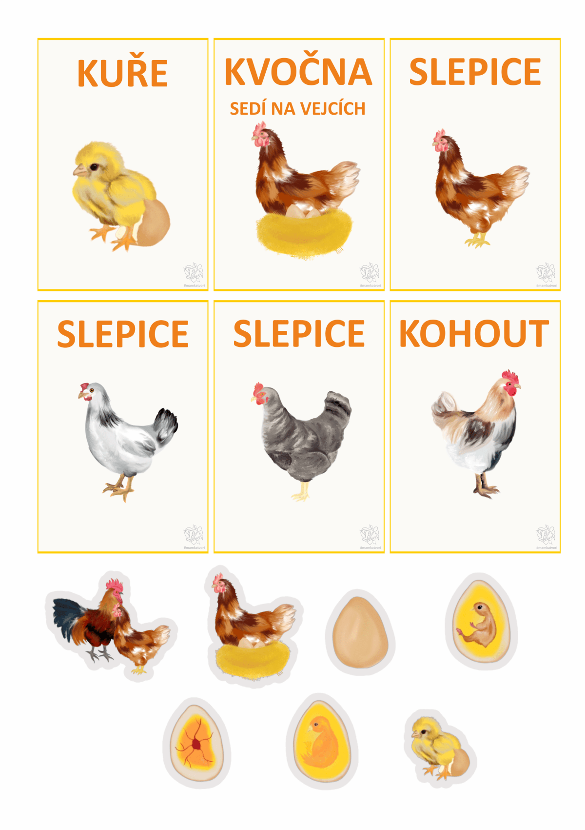 Teď jsem chtěla využít všechny slepice, kohouty, vajíčka a další na pracovní listy. Napřed x hodin malování a pak x hodin sestavování pracovních listů. Je to opravdu spoustu času ale hodně radosti z výsledku.