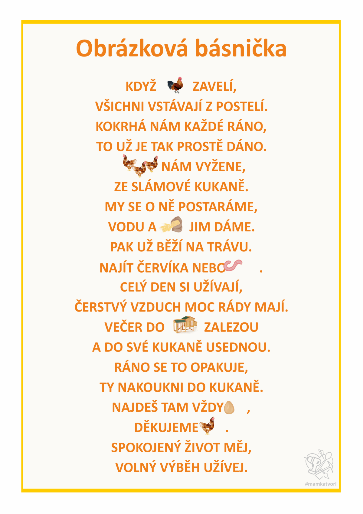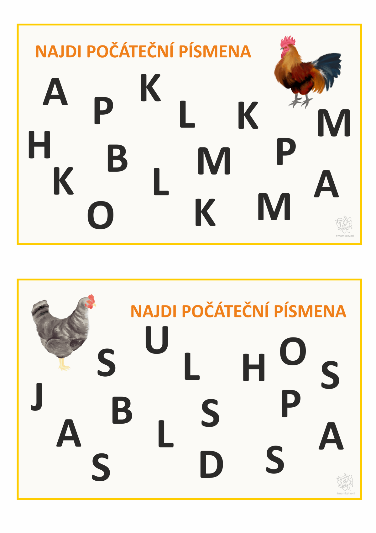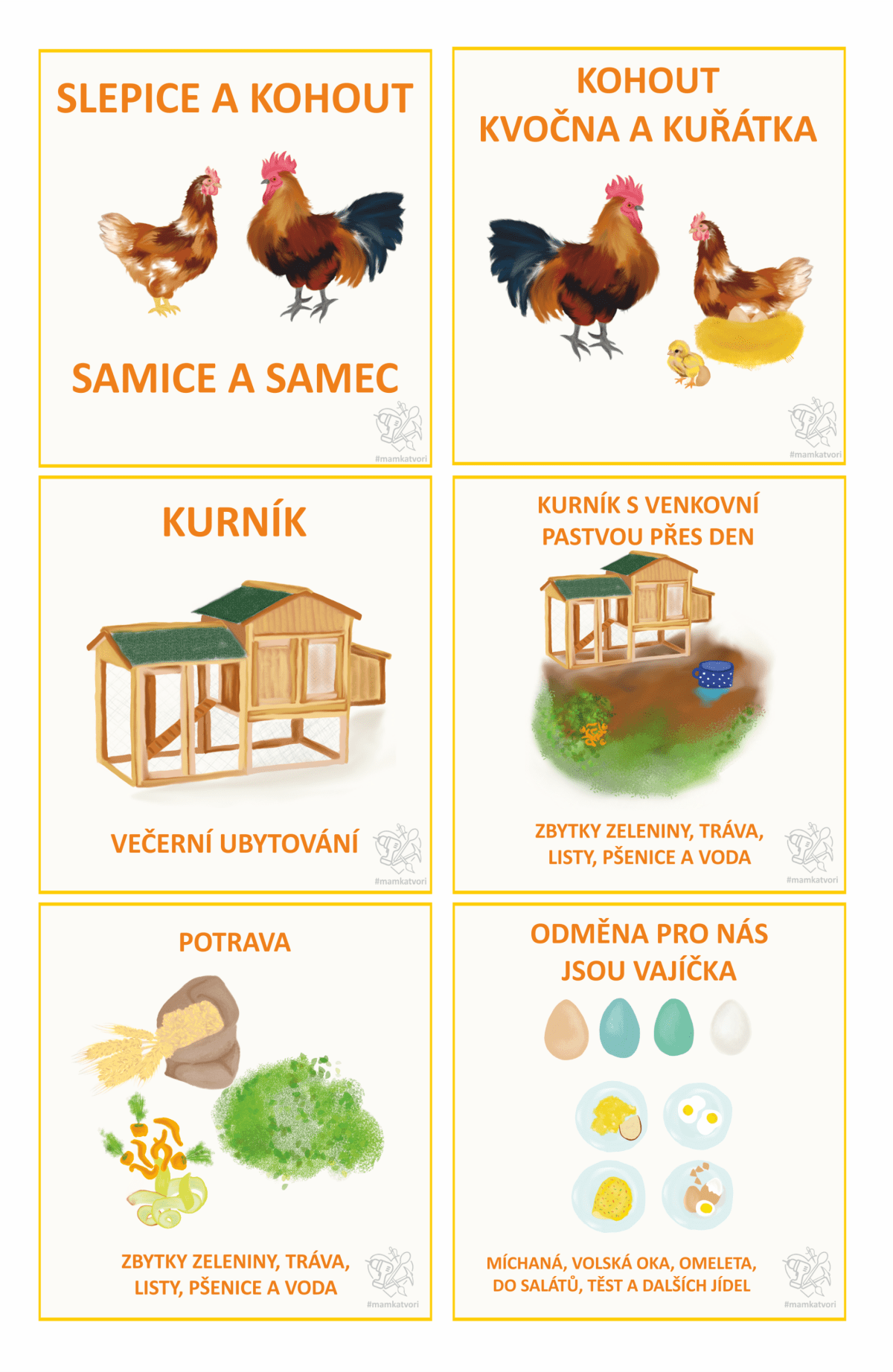 Teď jsem chtěla využít všechny slepice, kohouty, vajíčka a další na pracovní listy. Napřed x hodin malování a pak x hodin sestavování pracovních listů. Je to opravdu spoustu času ale hodně radosti z výsledku.