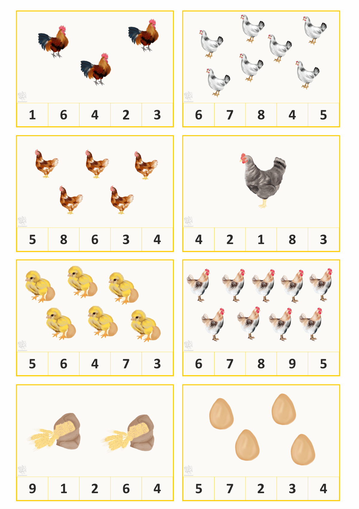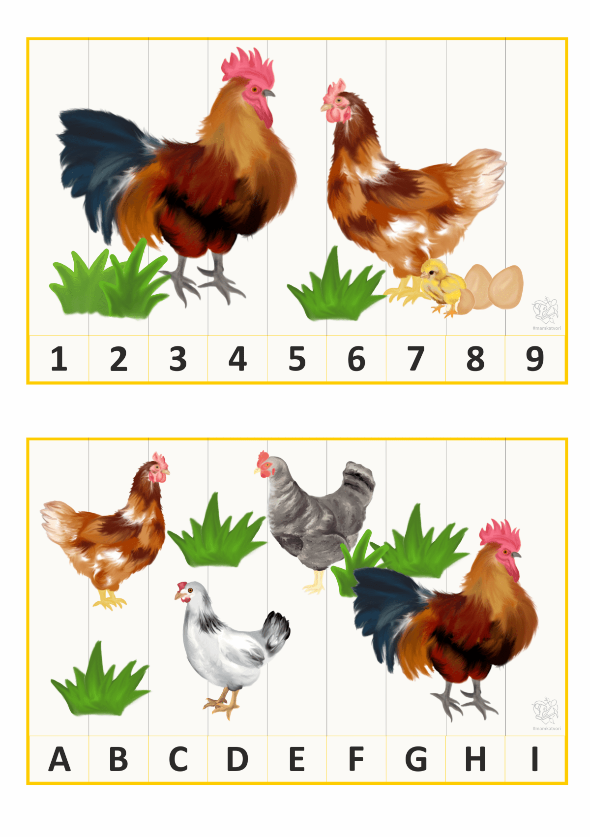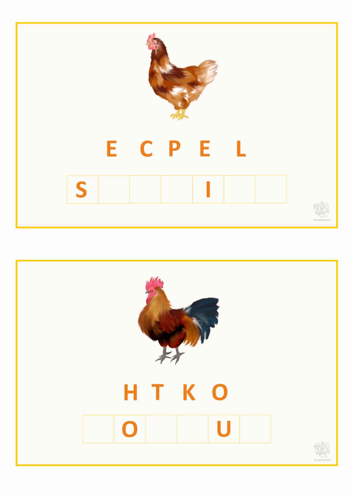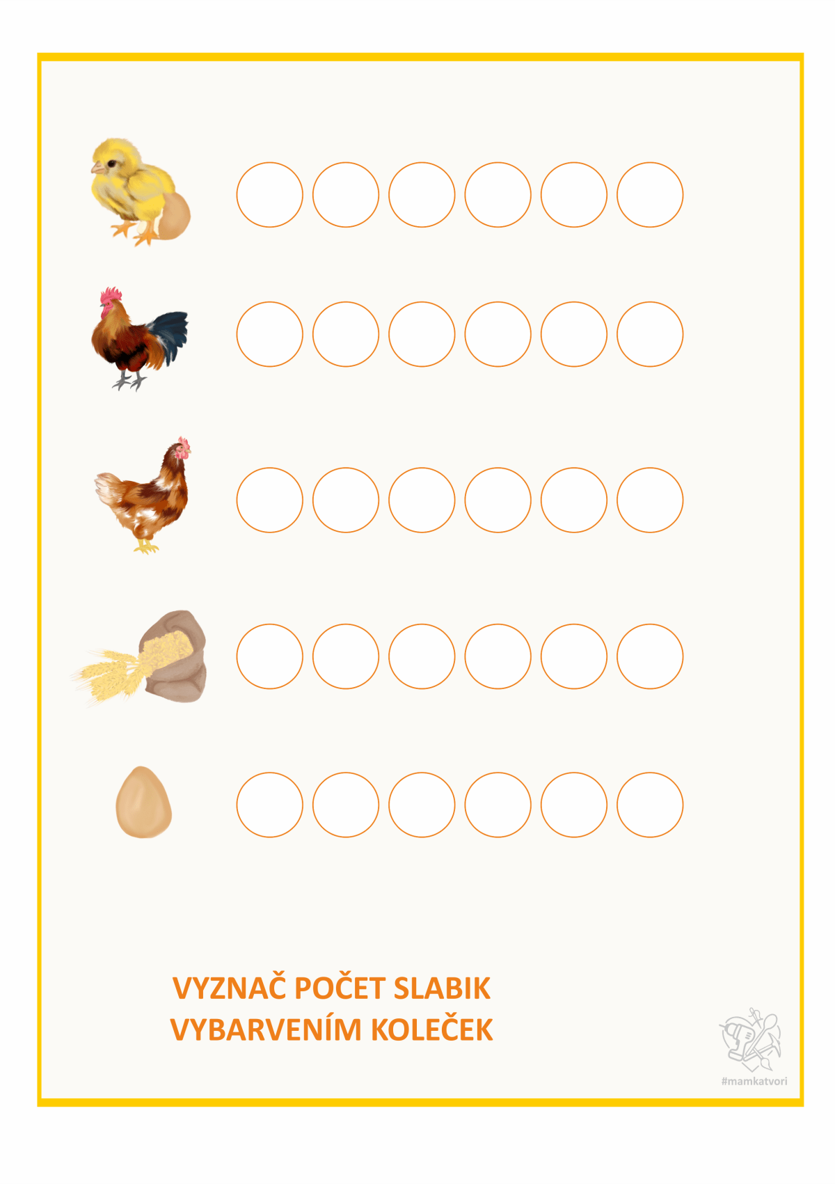 Teď jsem chtěla využít všechny slepice, kohouty, vajíčka a další na pracovní listy. Napřed x hodin malování a pak x hodin sestavování pracovních listů. Je to opravdu spoustu času ale hodně radosti z výsledku.