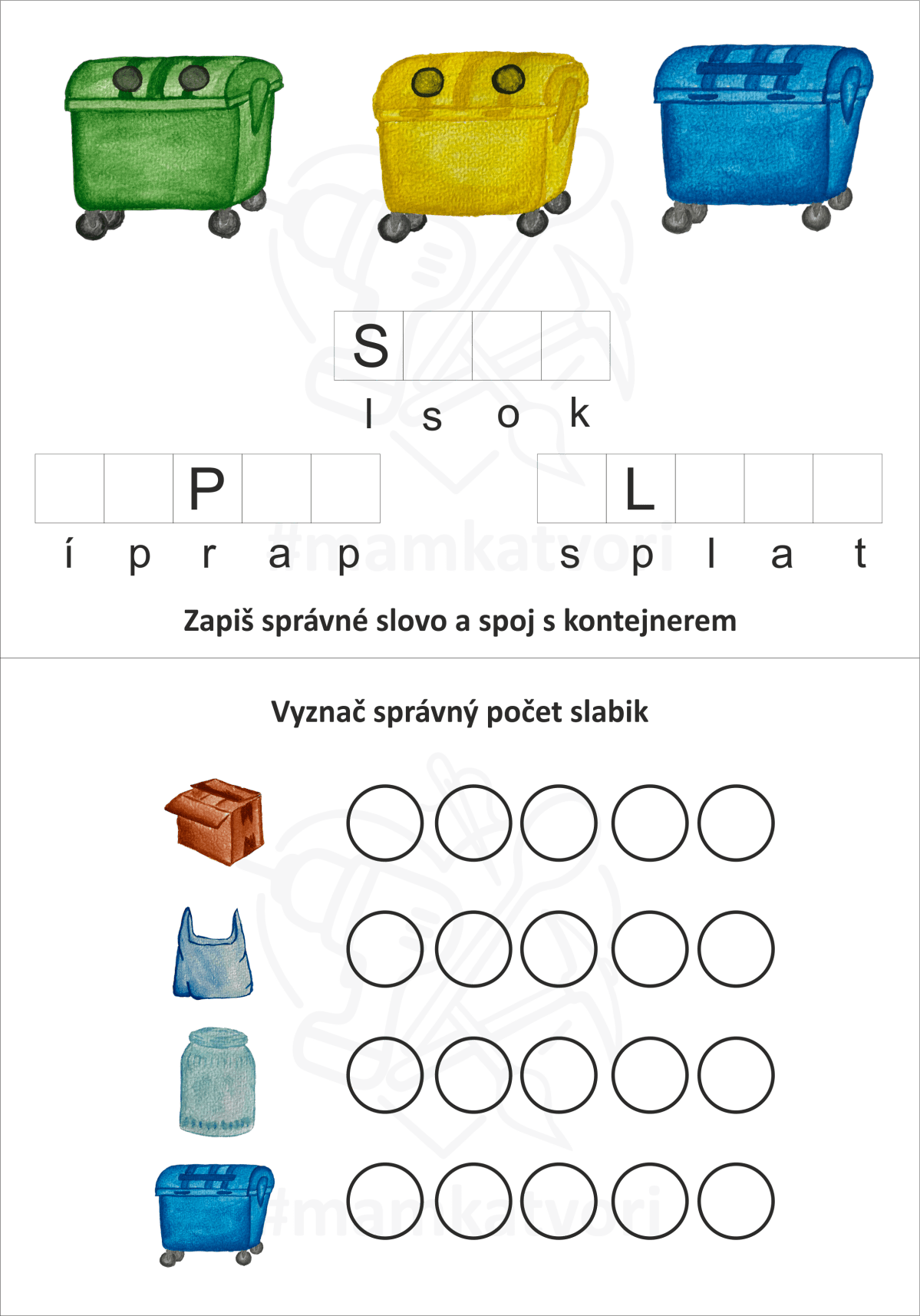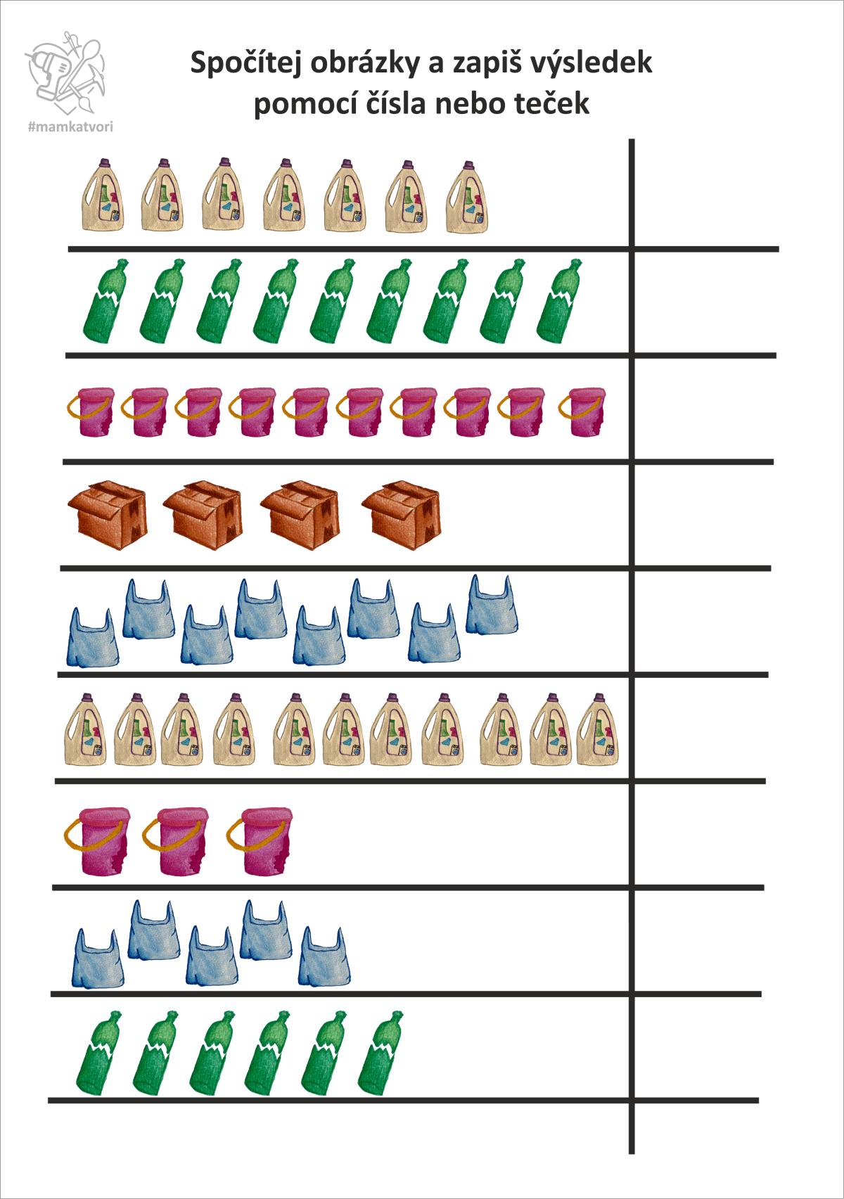 Já jsem udělala pár pracovních listů. Děti budou hledat, počítat i rozdělovat odpadky. Snad zábavnou formou se něco naučí.