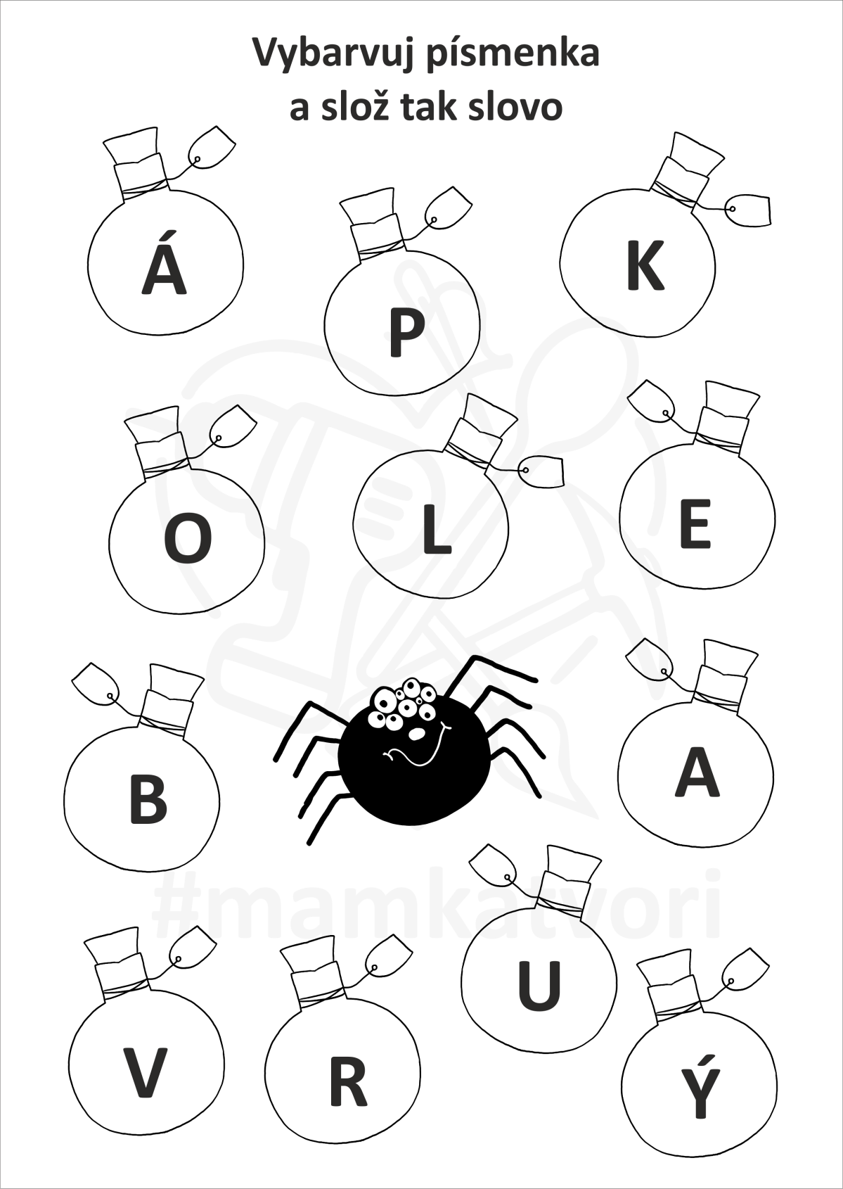 Vymaluj stejnou barvou slovo a počáteční písmeno