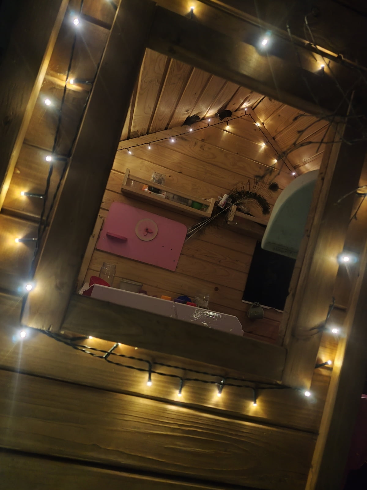 Jeden řetěz jsem tentokrát namotala do vnitřní části domečku aby, když holky chodí později spát měli další wow efekt.