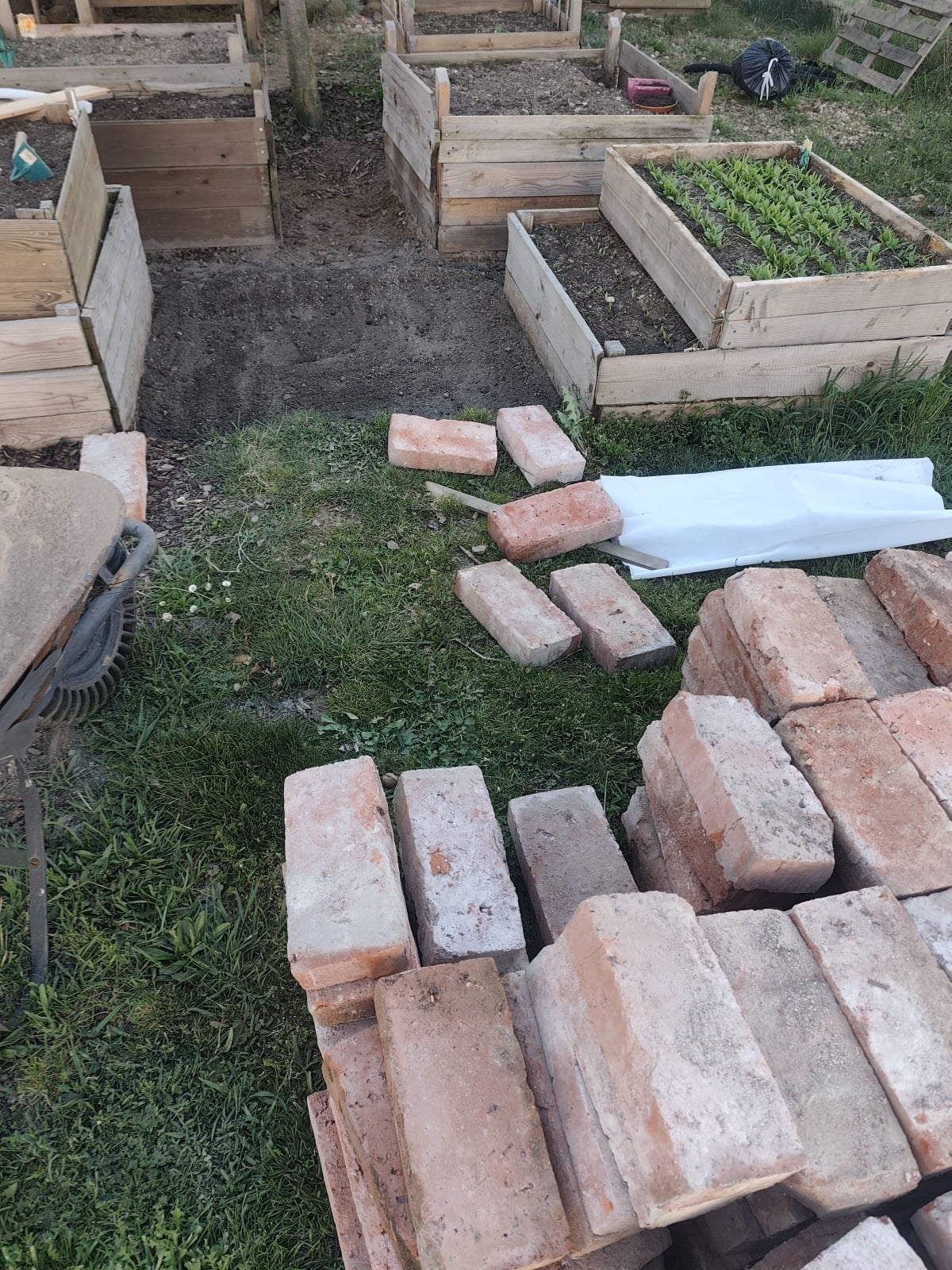 Z cihel mám v plánu udělat sezení, přístavbu k bylinkovému záhonu pro jahody. Chci si postavit stůl na přesazování a něco jako ohniště.