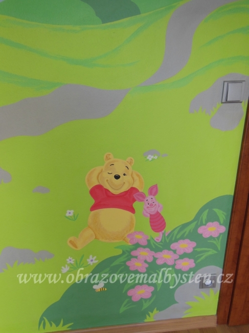 Když jsme si svépomoci s manželem postavili domek, nezbylo nám už financí na všechen potřebný nábytek a tak jsme si radili jak mohli. Ovšem nový pokojíček nám zůstal téměř prázdný, jen se starším psacím stolem, skříní na věcičky a postýlkou. Sice jsme pokojíček barevně vymalovali a polepili nějakými obrázky, ale naše dcerka přesto odmítala být ve svém pokojíčku sama, natož v něm sama spát. A to už jí táhlo na pátý rok.A tak jsme se všichni ( i s miminkem ) tísnili v ložnici. Jednou mě napadlo jí ho celý vymalovat oblíbenými postavičkami z pohádek...Po nocích, kdy děti spaly, já malovala a v den jejích pátých narozenin jí ho věnovala „ v novém kabátě “jako překvapení. Eliška do něj vběhla s otevřenou pusinkou. Vzápětí poskakovala nadšením a doslova nás proháněla při stěhování postýlky.Od té doby spinká sama, pokojíček je její království a zve si do něj hrdě své kamarády. Pokojíček ale měl velký úspěch i u všech známých a kamarádů a tak jsem se malování pokojíčků začala věnovat a moc mě to baví :-). A tady je ukázka některých pokojíčků a jiných mých nástěnných maleb: