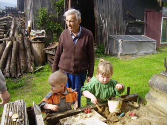 To je dětí, na te fotce jak mučí dědečka, než jsem si přečetla nadpis myslela jsem že sedí na koníkovi že je to dědeček jsem si vůbec nevšimla