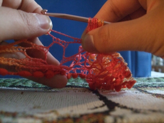 Jednu jsem zvládla odpoledne, když si s Aničkou hrála babi a jdne a půl teď večer, když šla Anča spát. Přidávám svůj pokus o popis postupu. Je to ta nejjednodušší verze. Sháčkovávání v mém případě osmi ok.