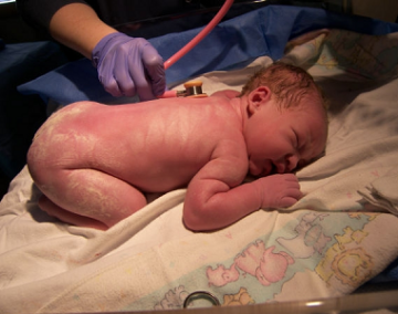 Najednou se otevřely dveře a vešel doktor, sestřičky. Dali pode mě igelit, nachystaní a že prý „tak jdeme na zatlačení a malá je venku, maminko“. Takže se šlo tlačit, ty brďo, já už myslela, že nezatlačím ani kousek, ale když tak všichni krásně povzbuzovali :-D, tak jsem do toho dala vše a opravdu se snažila. Jedno, dvě a tři a hlavička byla venku. Předpokládala jsem, že ramínka už bude pohoda, ale teda nebyla. Kristýnka měla totiž vzpříčenou ručičku, takže to nešlo tak hladce jak by mělo, ale dobrý, šup a byla venku. Otevřela jsem oči a viděla, že má pupečník kolem krku, ale hned jí ho oddělali a putovala rovnou na mě. To bylo 9:44 h. Byla celá od krve a všeho ostatního, hlavičku šišatou, ale mě se zdála ta nejkrásnější na světě, a jak plakala. Nechali ji na mě a vím, že se ptali Květoše, zda chce stříhat pupečník. On prvně nechtěl, ale asi nechtěl být za srágotku a čile se jal nůžek. Pak mi malou přiložili k prsu, aby se přisála a čekalo se, až sestoupí placenta. Povedlo se, malou si pak vzali sestřičky z novorozeneckého a Květoš fotil a já tam ležela, a sledovala vše kolem. Bylo před 10h kdy začalo šití. To probíhalo 45minut. Jak malou zvážily, změřily a zabušily, tak putovala Květošovi do náruče. A pan doktor šil a šil. Bože to byla bolest, Došel tam pan primář a pan doktor mu povídá „pane primáři, toto na mě vykouklo“. Pan primář mě vyšetřil rektálně, pak vaginálně a říká „no, tak to zašijte“. Vůbec nevím, co na ně vykouklo, ale nejsem šitá jen na hrázi, ale i na pravé straně. Pak mě ještě pan primář vyšetřoval vaginálně znovu a hmatal jizvu, myslela jsem, že ho kopnu, nemít nohy na těch podpěrách. Pak se mnou mluvil a ptal se mě, jak to vidím, jestli je lepší porod císařem, nebo přirozeně. Dala jsem mu za pravdu, že takto je to mnohem, mnohem lepší. Usmál se a odešel. Můj pan doktor mi pak řekl „maminko, asi mě nebudete mít ráda, ale zkusíme to spolu vydržet“ a pokračoval v šití. Květoš chodil s malou a vždy jen po očku se podíval na něj a pak soucitně na mě a já trpěla a snažila se neuhýbat a jen se dívala na moje nejmilejší osůbky. Po došití mě přišla umýt sestřička, dala mi košilku, přikryla mě a znovu jsem si vzala malou a tak si pěkně našla bradavku a už ju nepustila :-D. Všichni odešli a nechali nás o samotě. To bylo tak krásný. Pak jsem si vystřídala malou k druhému prsu a tak si povídali. Po 2h dojela sestřička z novorozeneckého, vzala si malou. Dovezli mi oběd a pak došla sestřička a šly jsme do sprchy. Já se osprchla, vzala si čistou košili a převezla mě na pokoj na šestinedělí. To bylo něco kolem 13h. Tam jsem se rozloučila s Květošem a celá nabuzená si lehla a čekala, až mi dovezou malou.