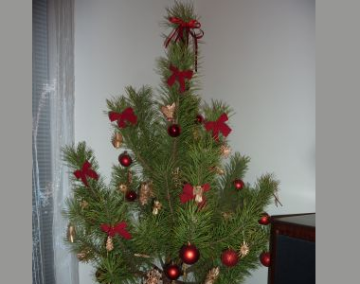 V neděli jsme ozdobili stromeček - tentokrát jsem to nechala spíše na Violce a manželovi a já přitom natírala komodu. Odpoledne jsme učinili pokus o vyfocení nějakých fotek, které bychom mohli použít na vánoční přání. Dělám to každý rok a pak ještě dělám grafiku a jiná pozadí a podobně. Tento rok jsem se rozhodla, že uděláme jen fotku a vlepím ji do přáníčka. Jinak už by toho na mě bylo moc. Z fotek vyšla pak jediná použitelná. Já prostě vypadám "blbě" a buď fotku kazím já, anebo když už vypadám obstojně, tak se zase ksichtí Violka. V pondělí jsem zjistila, že jsem zapomněla kabelku v Terryho autě a on odjel do práce, takže jsem byla celý den bez peněz, dokladů, klíčů i telefonu. Zůstaly jsme teda doma a já konečně dokončila natírání celé komody, kde bude mít malá oblečení.
