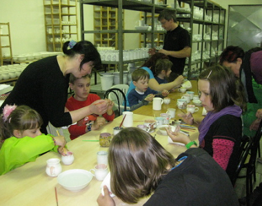 Po prohlídce a výkladu, jak taková keramika vzniká, měly děti možnost vybrat si glazované kousky a ty si vlastnoručně namalovat.