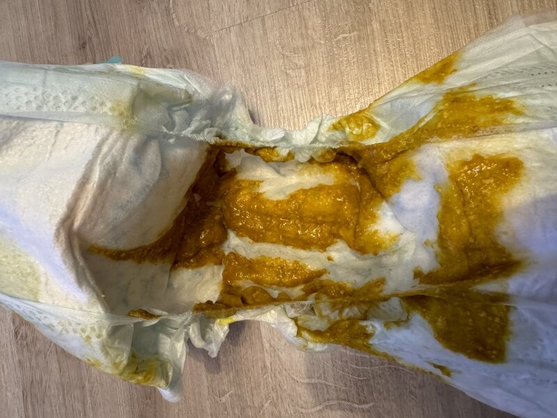Dobrý den, prosím o posouzení stolice kojence.Podezření na ABKM kvůli ekzému v obličeji, bezmléčná dieta držena již cca 3 týdny, ekzém z obličeje vymizel po cca 5 dnech.Dítě je plně kojené, stolice po narození byla žlutá, konzistence míchaných vajíček, později řidší, přidal se hlen (dle mého názoru), posledních pár dní i nazelenalá barva. Syn 2 měsíce, od včera vyžaduje velmi časté kojení (možná růstový sprut?), nově vkládá často pěsti a palec do úst (téměř jakoby značilo růst zubů, ale to se mi zdá velmi brzo). Bez teplot, prospívá. Stolice je ale častá, myslím, že i dost řídká a také častá.