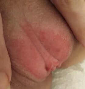 Dobry den pani doktorko. Prosim, tento problem mne trapi jiz nejakou dobu. Sexualniho partnera mam jednoho. Rozhodne nestridam ani ja ani on. Presto od pocatku problemu jsme spise zcela zdrzenlivi, dokud to nebude zaleceno. Kdyz uz ke styku doslo, nebyl pro mne styk vubec bolestivy, ale partner rikal, ze ma po styku se mnou jakoby pocit podrazdneni na penisu. (Mel na nem trochu bileho husteho vazkeho hlenu, ktery nijak nezapachal.) Z techto priznaku jsem usoudila, ze to je kvasinkova infekce po lecbe sirokospektralnimi antibiotiky (kterou jsem jiz v minulosti prodelala a uspesne zalecila). Brala jsem tedy probiotika jak peroralne, tak i vaginalni tobolky. Ale priznaky se rozhodne nelepsily,spise byly horsi. Nepomohl mi ani herpesin krem. Ani specialni intimni mydlo z lekarny. Zadne bolesti ani nekomfort pri beznych kazdodennich cinnostech nepocituji, vagina nijak nezapacha, nic z ni nevyteka. Ale jak je i na fotkach zrejme, mam ji v mistech, kde se vzajemne dotykaji stydke pysky velmi podrazdenou. Kdyz se techto mist dotknu, mam pocit velmi podobny jako pred vyskocenim oparu, jakoby pnuti (normalne nepocituji vubec svedeni ani nutkani se skrabat, skrabani je pro mne spise naopak neprijemne a bolestive), predevsim ve "svech" kde prechazi kuze ve sliznici, tam to ma tendenci praskat az do otevrenych ran, coz pak velice boli pri moceni. Na okraji podrazdeni mi kuze spise vysycha, primo v postizene oblasti ale sucha neni, tam je spise jakoby mokvava. Musim se kazdy den holit uplne dohladka, protoze dorustajici chloupky mne "bodaji" do postizenych mist. Nez pujdu osobne k lekari, chtela bych vedet, co mi je. (Jedine, co mi trosku pomaha je, kdyz si mezi stydke pysky vlozim utrzek prelozeneho neparfemovaneho toaletniho papiru.) Menstruaci mam pravidelnou. Dekuji predem za vas cas a ochotu pomoci.