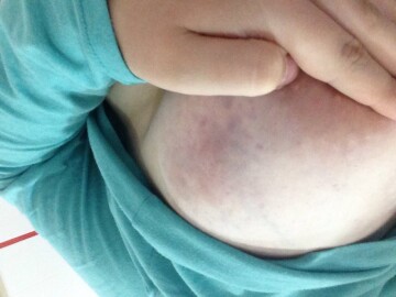 Dobrý den, může se jednat o zánět v prsu. Pokud by se stav zhoršoval nebo jste měla horečky, pak navštivte lékaře ihned. Pokud se stav zhoršovat nebude, i tak navštivte raději svého gynekologa o týden později, aby Vás zkontroloval.