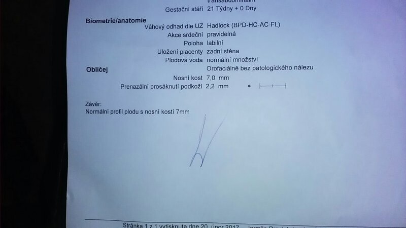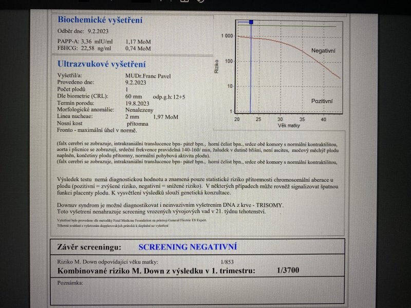 takto Vám nemohu hodnotit výsledky screeningu, pokud Vás lékař nealarmoval, že by bylo něco zásadně v nepořádku, zůstaňte v klidu.