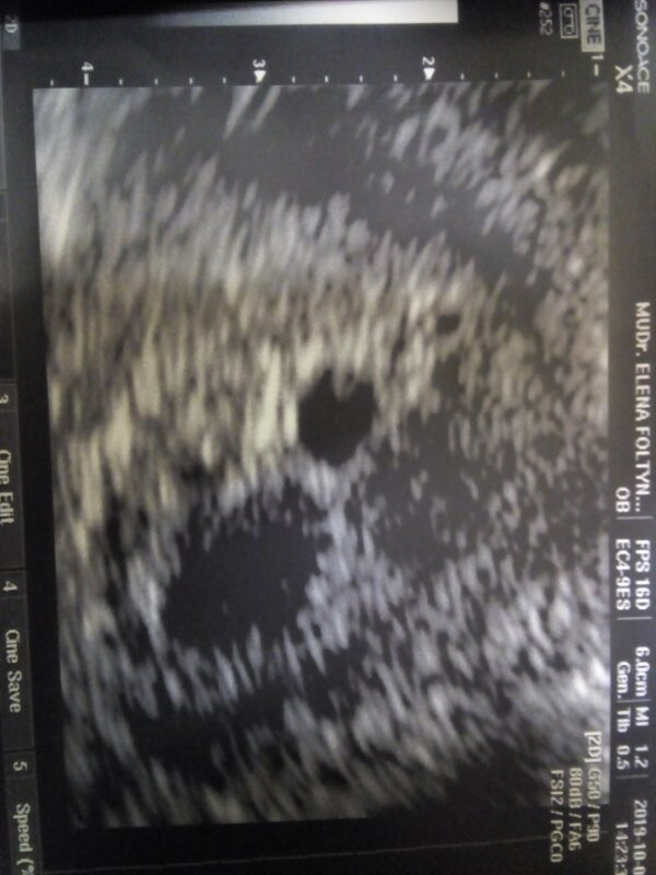 Dobrý den, takto popisovat ultrazvuk z fotografie, navíc v bídné kvalitě, nemůže být směrodatné a přesné, s jistotou je vidět správně uložený gestační váček, s event. možným stínem žloutkového. Obraz bych řekla zcela odpovídá stádiu gravidity, které uvádíte.