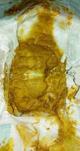 Dobrý den, mám 4měsíčního syna plně kojeného a dnes měl stolici viz. foto. Stolice je intenzívně zapáchající a má konzistenci jako nějaká mast. Je stolice normální? Děkuji za odpověď.
