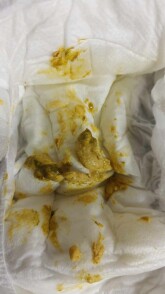 Průjem u miminka je zelená voda 5 - 10x denně, podle fotky to spíše vypadá na hladovou stolici - může to být v rámci růstového spurtu. Charakter stolice mohou změnit i přípravky na větry - pokud je používáte. Pokud dítě přibírá a nemá další potíže, není třeba problém řešit.