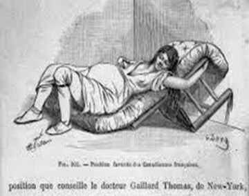 „Primitivní národy z velké většiny rodily a rodí ve vertikální poloze a stejně tomu zřejmě bylo kdysi i u nás, dokud ženy rodily s porodními bábami. Než do procesu vstoupili muži, kteří potřebovali dobrý přístup k porodním cestám při vaginálně vedených operacích (přes pochvu). Ve vertikální poloze by pod ženou lékař musel stát jako automechanik pod autem a vše, včetně plodové vody by mu padalo a kapalo na hlavu. Proto si porodník ženu položil do horizontální polohy, aby měl rodidla před sebou a mohl jakoukoli porodnickou operaci jednoduše provést.“