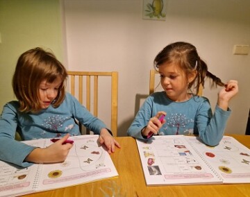 Výslovnost C, S a Z dělá holčičkám ještě občas potíže, hlavně, když chtějí rychle něco říct. Proto jsem moc ráda, že jsme si to i v Týdeníčku hravou formou zopakovaly. Protiklady holky zvládají bravurně a obkreslování maminčiny ruky si moc užily.