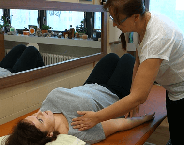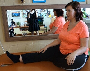 Maminka je ve 31. týdnu těhotenství. Trpí otoky nohou. Fyzioterapeutka ji naučí pár cviků, které jsou prevencí vzniku otoků a tvorby křečových žil v t...