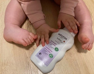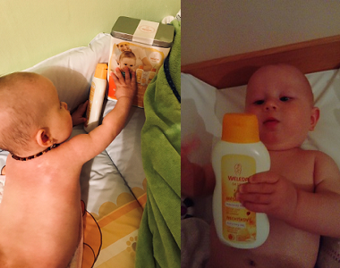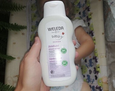 Tělové mléko Weleda zklidnilo Jonášovu pokožku