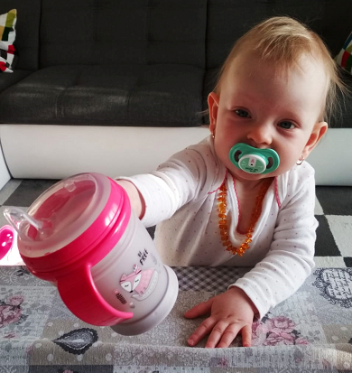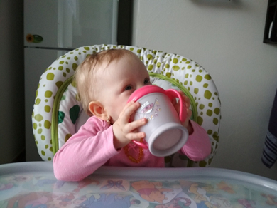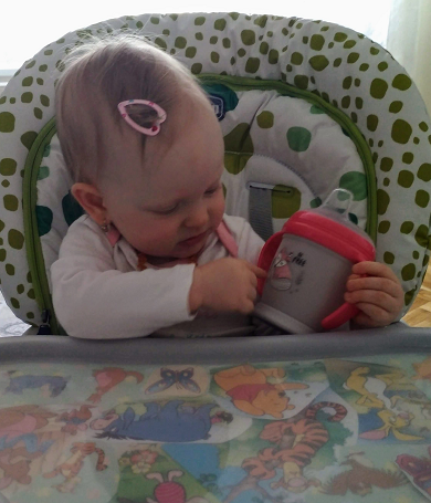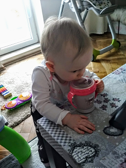 Pro roční dceru je pití z hrníčku náročné, jelikož je zvyklá na brčko
