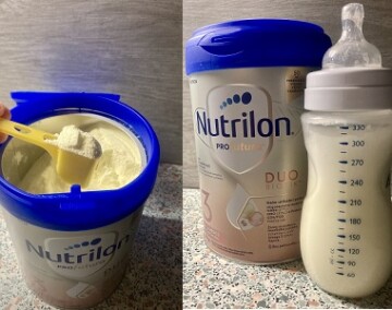 Velmi se mi líbí receptura výrobce, která je speciálně vyvinutá pro podporu imunitního systému miminka. Je jako většina umělých mlék bez palmového oleje a škrobů. Nutrilon 3 Profutura DUOBIOTIK™ obsahuje důležité látky, a to díky oligosacharidům mateřského mléka 2'FL a dále HMO 3'GL. Obsahuje také prebiotika GOS/FOS. Složení také obsahuje vysoce kvalitní mléčný tuk a živiny – vitamíny C a D navíc v něm také je omega 3 a vápník potřebný k vývinu kostí a zubů.
