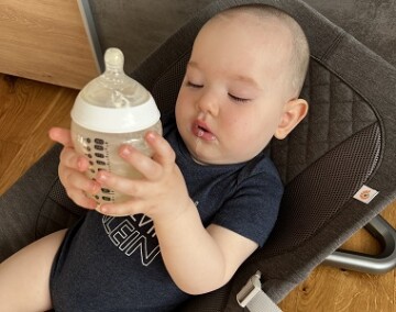 Malý vzal láhev, ochutnal, vytáhnul ji z úst, podíval se na mě, co jsem mu zase dala za jiné mléko. Ptala jsem se ho, copak se děje: "Nechutná ti mlíčko?" Odpověď byla jako vždy "hmm hmm" a pokračoval v pití dál. Během minutky byla porce v něm, tak jsem usoudila, že mléko Nutrilon 3 Profutura DUOBIOTIK™ mu chutná. Koukal na mě, zda máme ještě, že mu tahle porce nestačila. Musela jsem dodělat ještě jednu porci, která se v něm také ztratila velmi rychle. Odříhnul si a spinkal krásných 8 hodin v kuse. Mléko Nutrilon 3 Profutura DUOBIOTIK™ pije 2-3x denně cca 266 ml hotového mléka dle doporučení výrobce. Neviděla jsem žádný problém, že by Ondráškovi mléko nechutnalo. Neublinkává si, je spokojený. Stolici má také normální. Podle pana doktora je vidět, že prospívá a je spokojený. Máme otevřené poslední balení a spokojenost je zatím maximální.