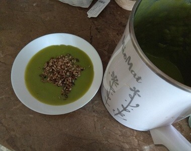 Po smoothie a kaši jsem vyzkoušela dýňovou polévku, protože je jedna z našich oblíbených. Jednodušší příprava polévky už asi neexistuje. Prostě jen dám všechny suroviny nakrájené na kousky do MioMatu, zapnu program „Mash“ a za 25 minut mám hotovou polévku. Mezitím stihnu třeba vyskládat myčku, pověsit prádlo, nebo si zahrát s dětmi pexeso. Celá dávka vyjde na 4 porce, takže se najíme všichni. Polévka byla dobrá, jen dám příště zase víc surovin – máme rádi krémovější.