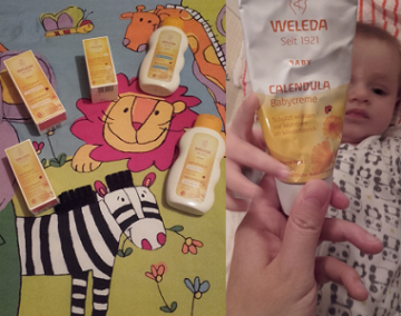 s kosmetikou Weleda jsem měla první zkušenosti už z doby těhotenství, kdy mi vyhovovala jak přírodním složením, tak jemnou vůní, která mi jako jedna z mála neobracela žaludek naruby. :-) Na testovací balíček pro miminko jsem se proto moc těšila. S prvorozeným Kájou, kterému jsou čerstvě čtyři měsíce, jsme se tak pustili do zkoušení produktů hned v den doručení.