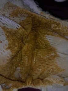Dobry den,Mam 5ti mesicni holcicku a uz od 3. mesice ji trapi hlenovita stolice. Zpocatku bylo i trochu krve, pediatricka doporucila vyradit mlecne vyrobky a krev zmizela. Hleny ve stolici vsak stale zustaly a nyni par dni zpet zmenila stolice barvu ze zlute spise do hneda viz foto. Stale drzim bezmlecnou dietu...mohu se zeptat cim by to jeste mohlo byt?Dekuji.Silvie